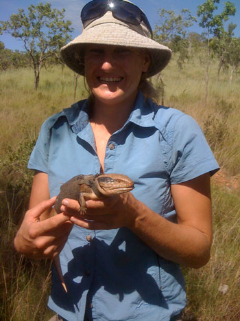 Our main focus is on lizards, because snakes seem like they are VERY slow learners, and crocodiles learn so fast they don’t really need our help. Sam Price-Rees has followed blue tongue skinks around in the Kununurra area, using radio transmitters to keep in touch with her animals. When edible-sized toads arrived at her study site, Sam trained half her lizards to avoid toads, then re-released them. The trained lizards were much more likely to survive than the untrained ones, suggesting that we might be able to apply taste-aversion learning to reptiles as well as to quolls.